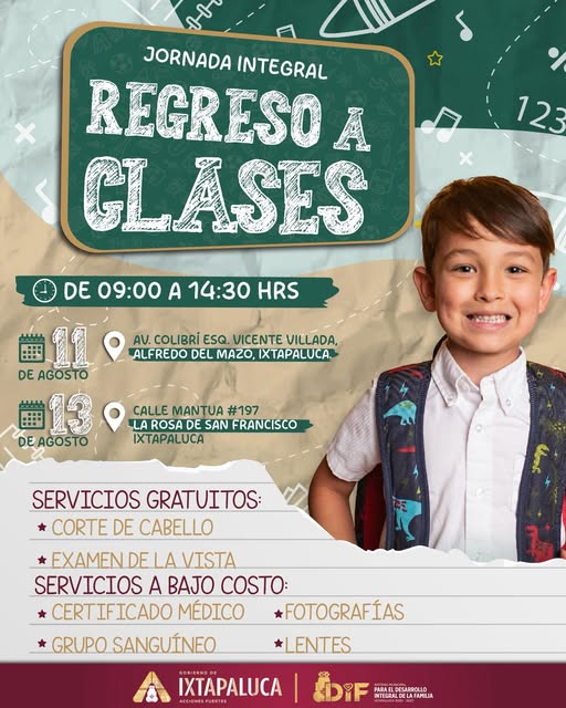 ¡Nos preparamos para un regreso a clases con todo! En nuestra Jornada Integral encontrarás servicios gratuitos como corte de cabello y examen de la vista, además de otros a bajo costo: certificado médico, fotografías, grupo sanguíneo y lentes.