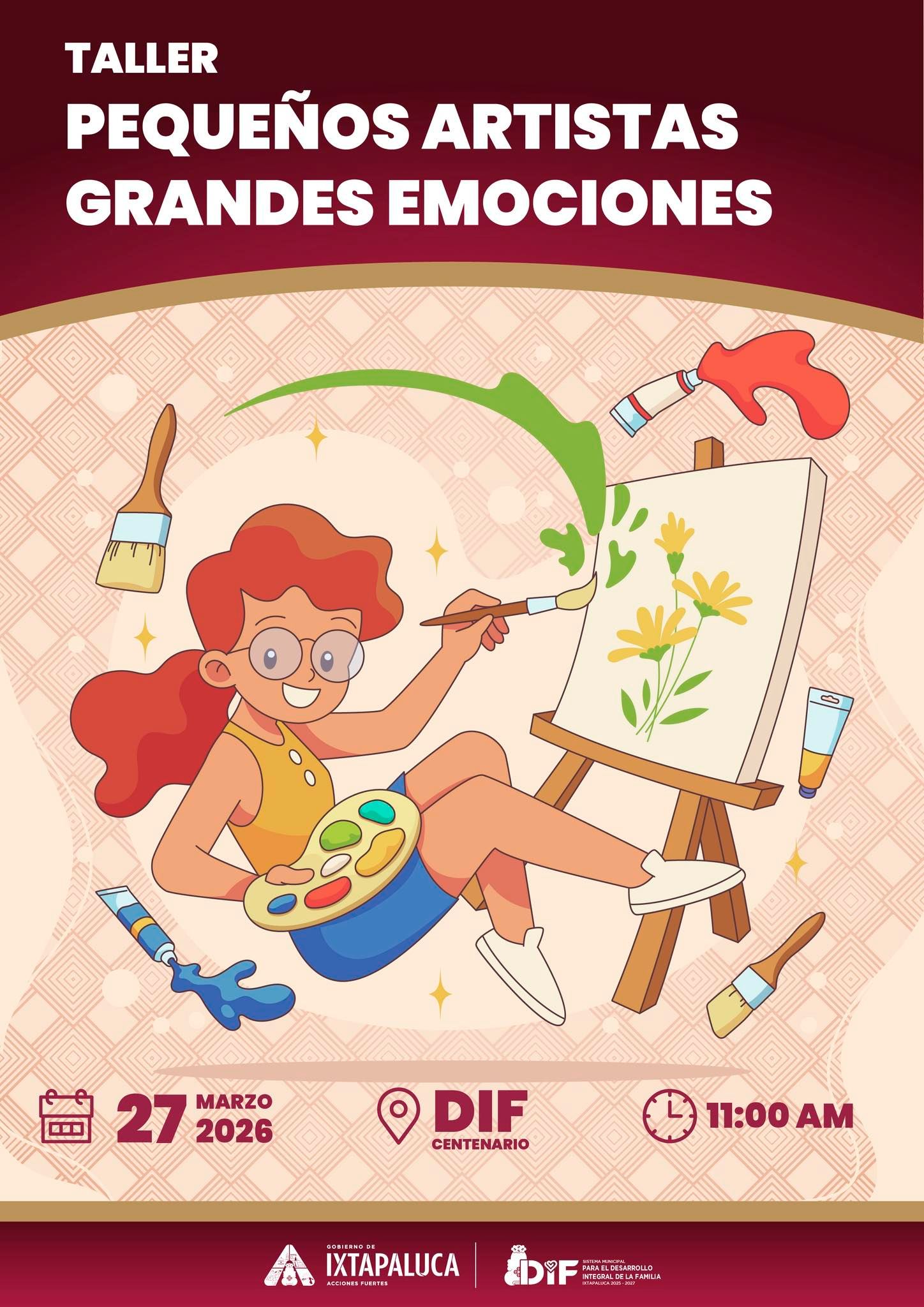 En el DIF Ixtapaluca sabemos que expresar lo que sentimos es parte fundamental del desarrollo de nuestras niñas y niños. Por eso, te invitamos a ser parte de este hermoso taller en el que, a través del arte, podrán explorar sus emociones de forma creativa y divertida.